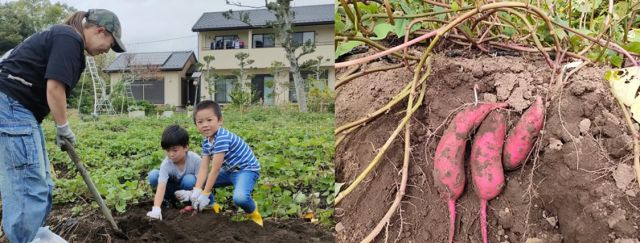 さつまいも収穫と話題のバイオ炭作り体験 新鮮野菜のバーベキューランチ付き